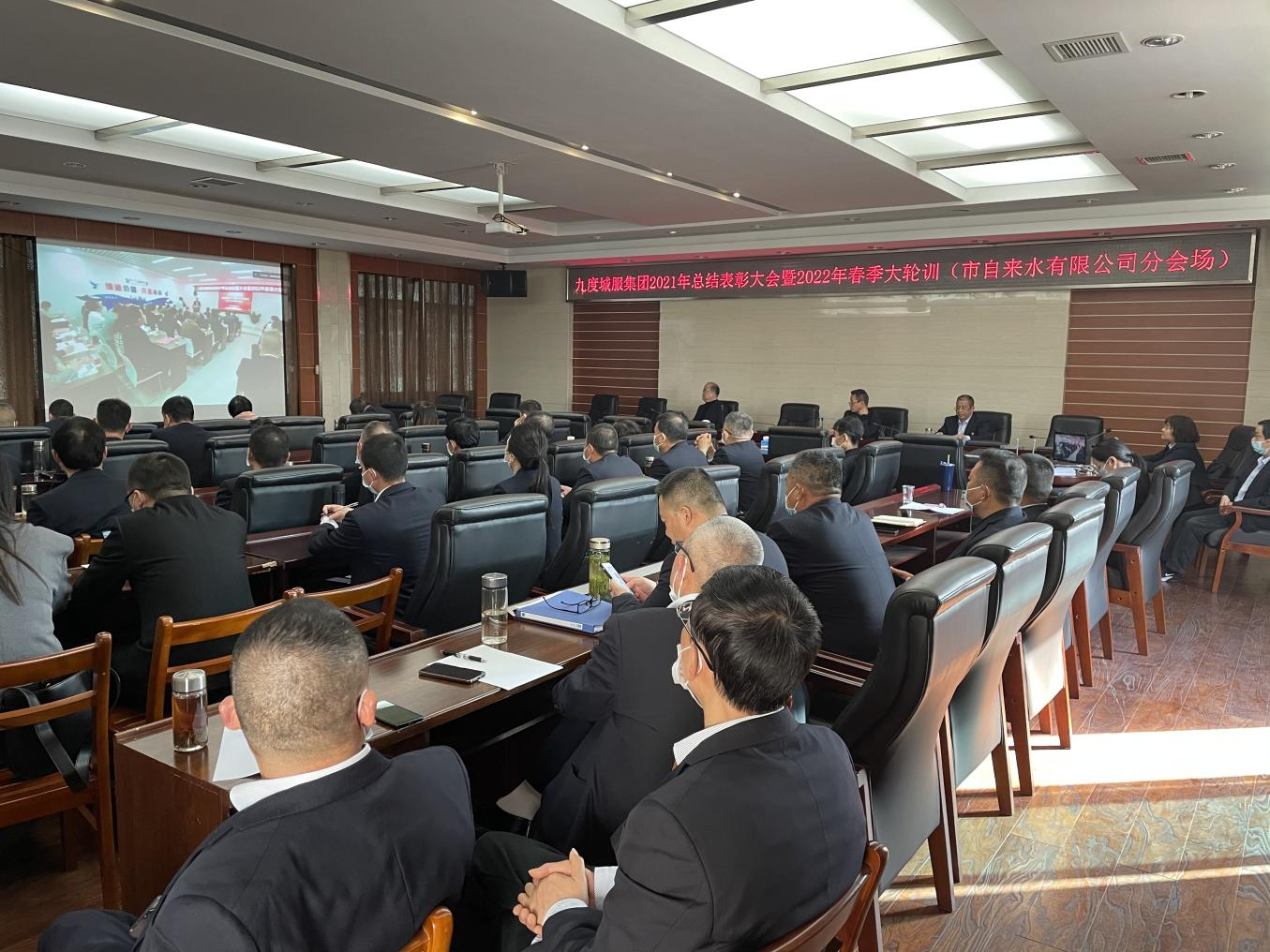 3月11日-12日,在市自來(lái)水公司三水廠會(huì)議室,中層副職及以上人員以視頻會(huì)議的方式參加了九度城服集團(tuán)2021年度總結(jié)表彰暨2022年春季大輪訓(xùn)。