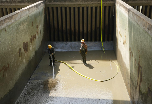 平流池作為水處理核心設(shè)施,長(zhǎng)期截留原水中的泥沙、藻類(lèi)及重金屬顆粒。若未定期清理沉積物可能滋生微生物,甚至釋放二次污染物,池底淤積也會(huì)改變?cè)O(shè)計(jì)水流形態(tài),影響絮凝體沉降效率。此次清洗工作可恢復(fù)池體過(guò)水?dāng)嗝妫粌H能有效預(yù)防二次污染、減輕濾池負(fù)荷,還可降低水處理藥劑成本,助力水處理工藝穩(wěn)定運(yùn)行,保障優(yōu)質(zhì)的出廠水水質(zhì)。