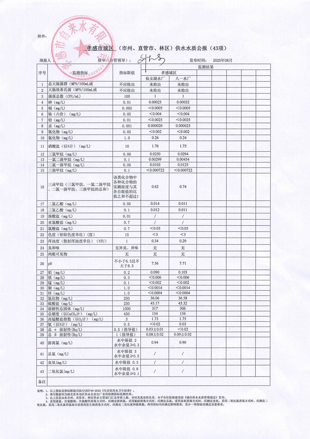 2025年8月水質(zhì)報(bào)告